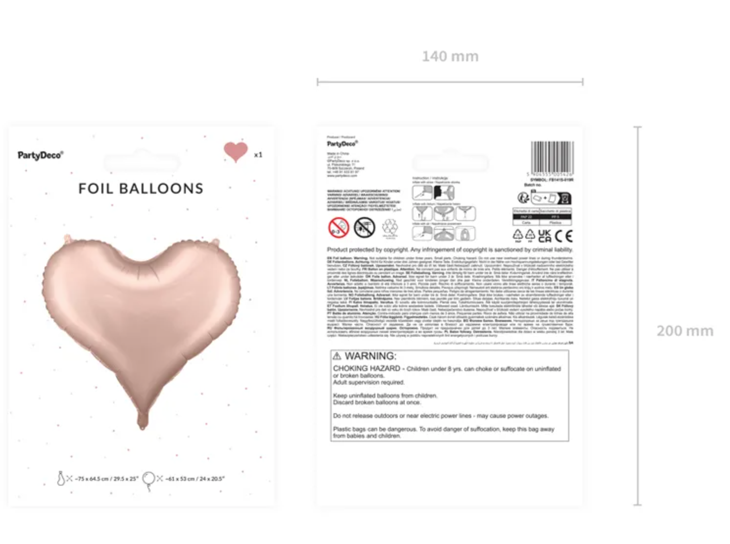 XL Folienballon Figur - Herz Roségold - 75cm x 64,5cm